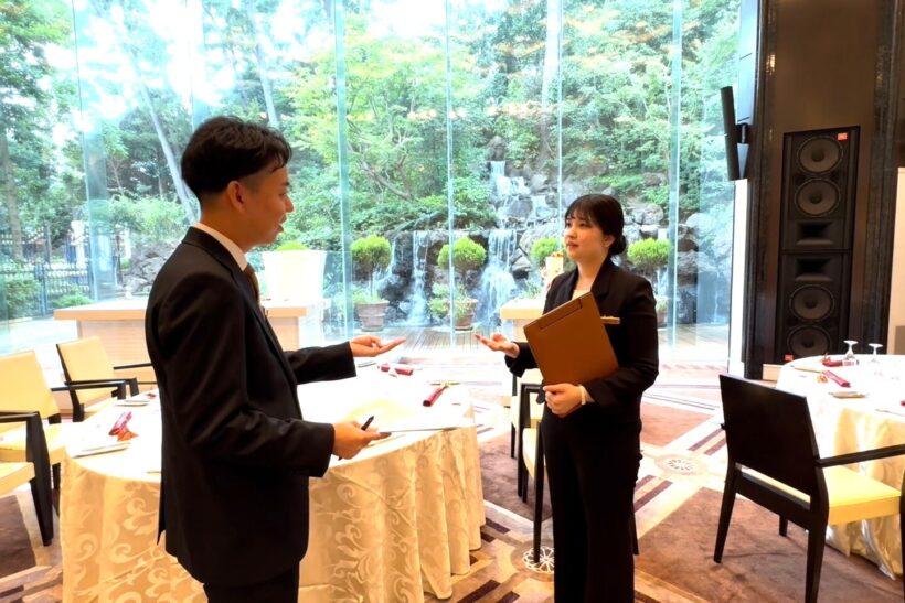 披露宴の流れをサービススタッフと打ち合わせする様子