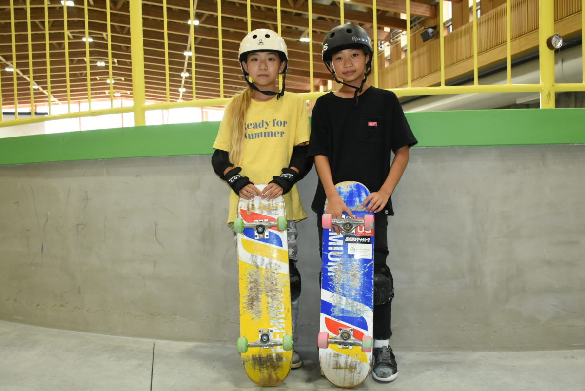 週にかなりの頻度で練習に訪れるという上村海音ちゃん(写真右)と赤間凛音ちゃん。家族の影響でスケートボードを始めた2人だが、今では国内外の大会で活躍をみせている