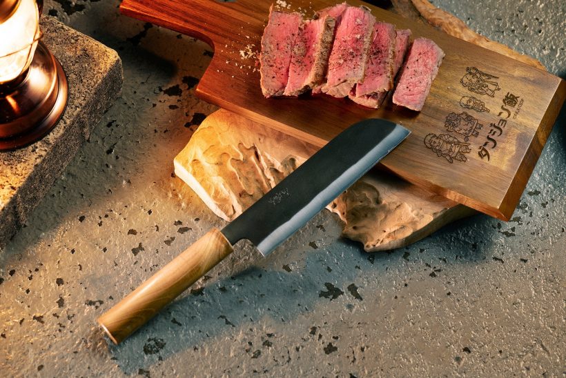 燕三条の鍛冶職人が手掛ける本格派の包丁や両手鍋、フライパン、カニフォークに『ダンジョン飯』原作者九井諒子氏直筆のイラストを刻印。また燕三条製調理器具と相性のいい海外製木製品にキャラクターやロゴを刻印したウッド系アイテムも追加し、合計13点のコラボ調理器具をラインアップ。4月3日から「村の鍛冶屋」のECショップなどで販売を開始する。