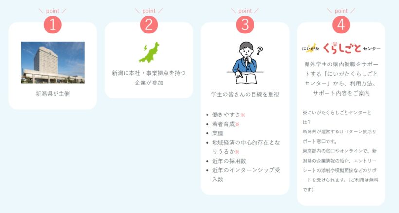 「にいがた冬のインターンシップ&仕事体験フェア」のポイント(新潟県ホームページより抜粋)