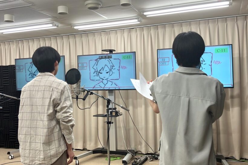 収録は約2時間にわたり行われ、すべてのカットにキャラクターたちの声があてられた。収録が終わると、常に張り詰めた表情でマイクに向かっていた学生たちの表情はほころび、現場は学生たちの明るい声で満たされていた。