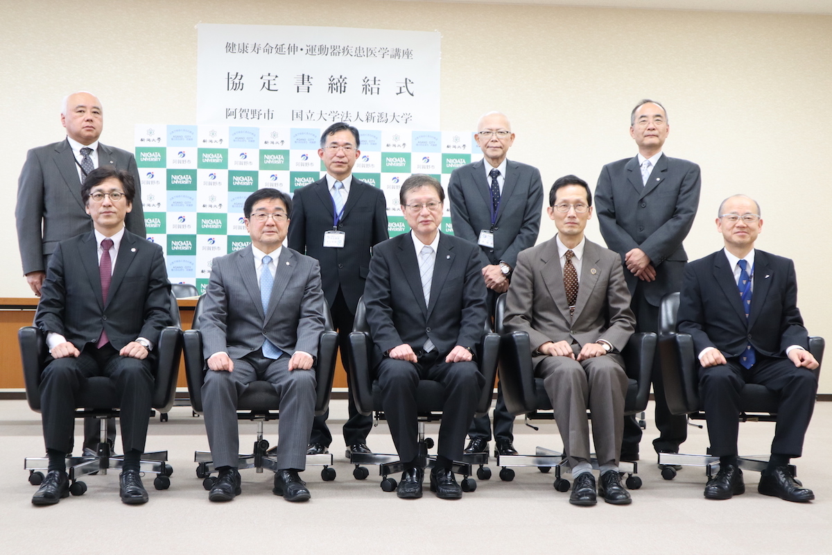 新潟県阿賀野市と国立大学法人新潟大学は22日、「健康寿命延伸・運動器疾患医学講座」の設置に関する協定書締結式を阿賀野市役所で行なった。