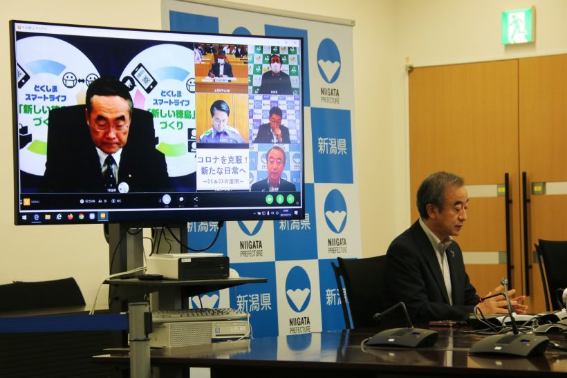 全国知事会新型コロナウイルス緊急対策本部会議が11日、オンラインで開催され、新潟県の花角英世知事が新潟県庁から出席した。