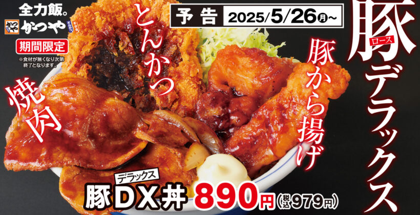 株式会社かつや(東京都千代田区)は5月26日から、「豚DX(デラックス)丼」と「豚DX(デラックス)定食」を期間限定で販売開始する。