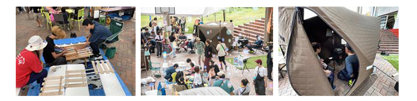 会場にはテントサイト10区画と宿泊棟14室があり、イベント後の宿泊も可能。ジンギスカンや一部体験、宿泊には事前予約が必要なため、関連リンクから確認を。