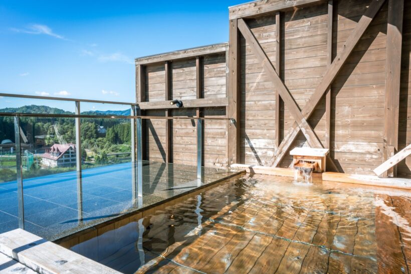 温泉はホテルの大浴場、展望露天風呂「宙(そら)の箱舟」が利用できる。そのうえ、グランピング施設の本格サウナも利用できるのはありがたい。胎内高原の大自然に包まれながら外気浴で整いまくり。半日びっしり胎内リゾートを堪能し、夕方には帰りたくなくなるかもしれない。