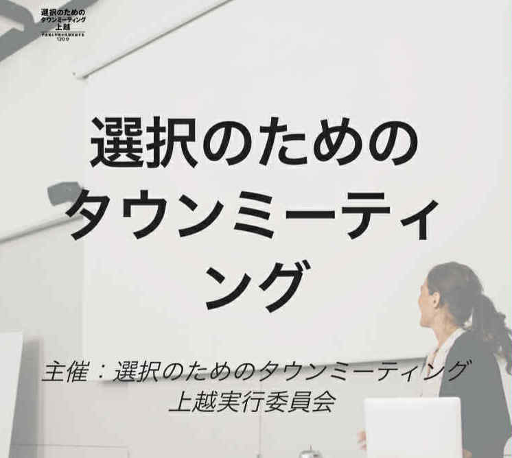 選択のためのタウンミーティング実行委員会は、10月18日14時〜15時30分、新潟県上越市市民プラザ第1会議室で、市民が上越市の未来像と各自の「選択の基準」について対話するイベント「選択のためのタウンミーティング」を開催する。