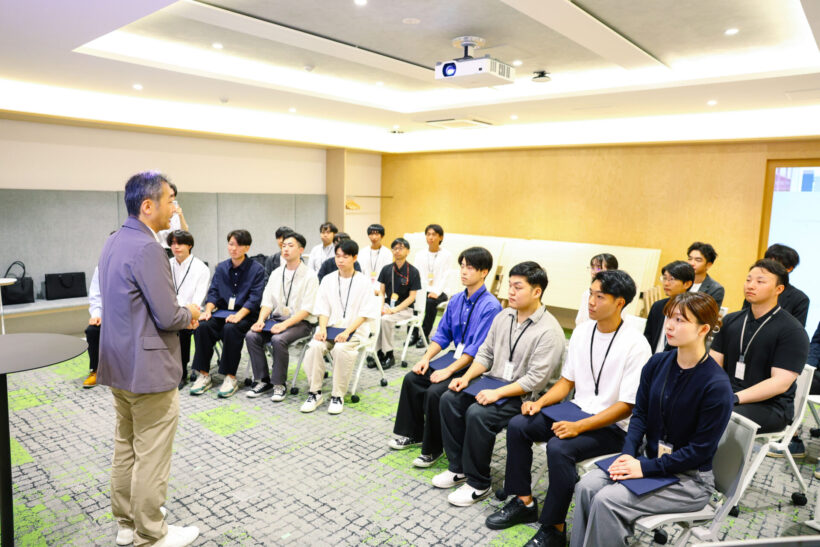 今年は入社1、2年目の社員も参加し、未来の後輩たちをペンライトを振って迎えた。その後、同社の澁谷高幸常務取締役CSOから内定者一人ひとりへ内定証明書が手渡された。