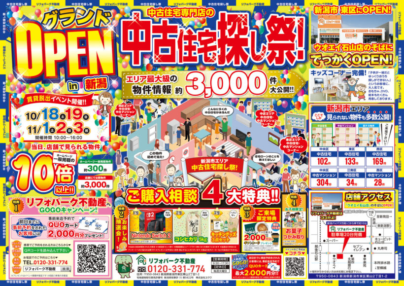 エリア最大級の物件情報を持つ「リフォパーク不動産」がグランドオープン 記念イベントを10月18日から開催(新潟市東区)