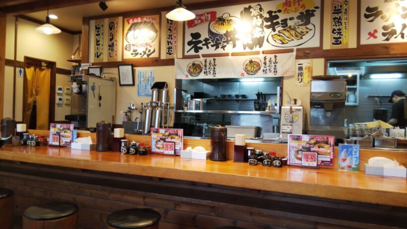 昼下がりの13時すぎ、ほどよく賑わう店内には湯気とともに豚骨の香りが漂い、空腹を優しく刺激してくる。入り口にはアルコールスプレーが設置され、感染症対策も万全。カウンター席とテーブル席があり、ひとりでも仲間とでも落ち着いて過ごせる空間だ。喫煙不可なのも嬉しいポイント。注文は食券前払い制で、迷わず選んだのは「MAXラーメン豚骨塩」。