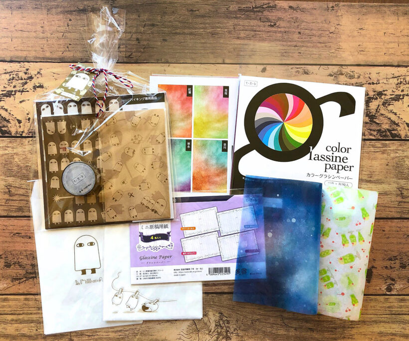 同ブランドは、透明感のあるグラシン紙を使ったペーパーアイテムを展開。会場では、書籍で紹介された「透ける折り紙」や、50種類以上のデザインから選べる「グラシン紙バイキング」、人気の「メジェド」シリーズなどを販売する。