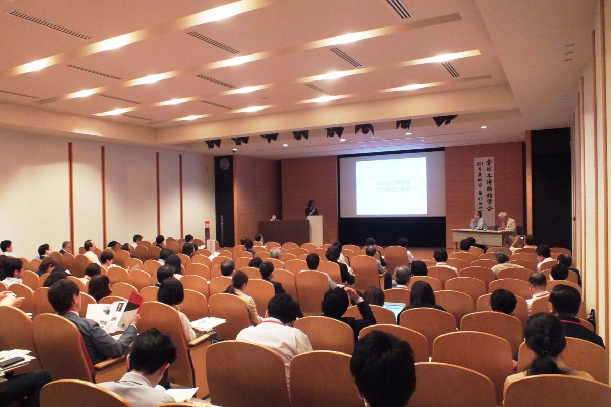 清水玲子氏(明治大学)の発表の様子。研究発表はテーマ「SDGsと博物館 -その課題と展望-」