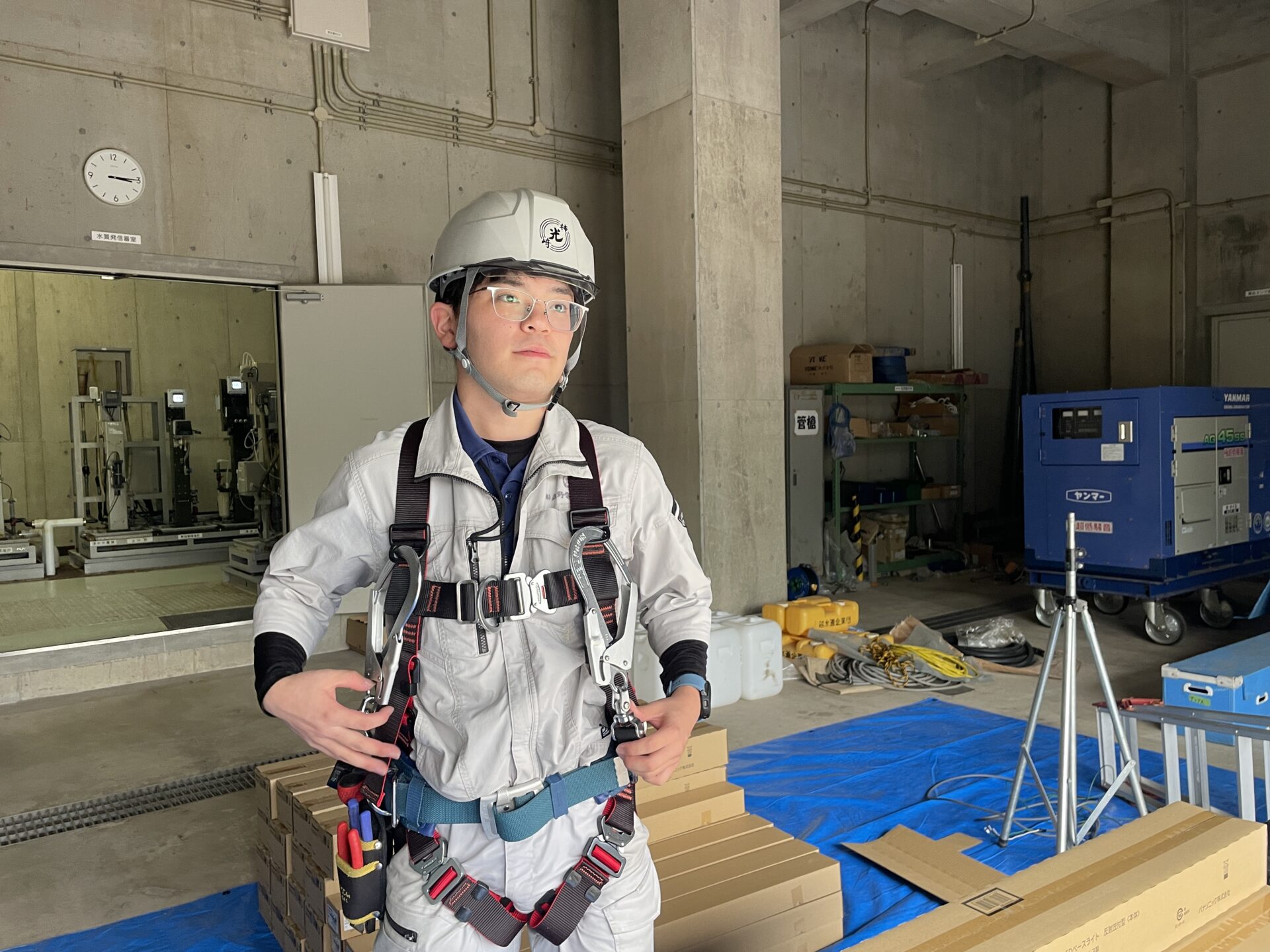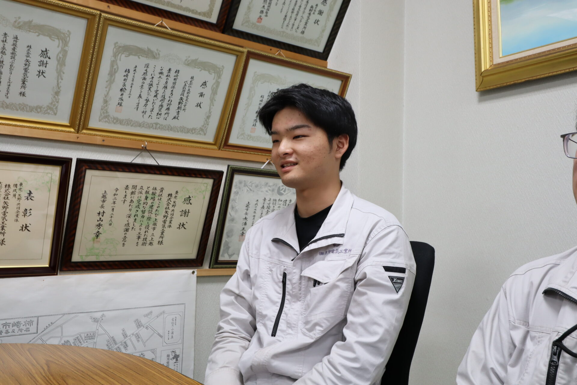 一方、入社半年の下間さん(19歳)は、日常で使われる電気に関するものづくりの過程に興味を持って入社。現在は発電所の配線工事を担当する。