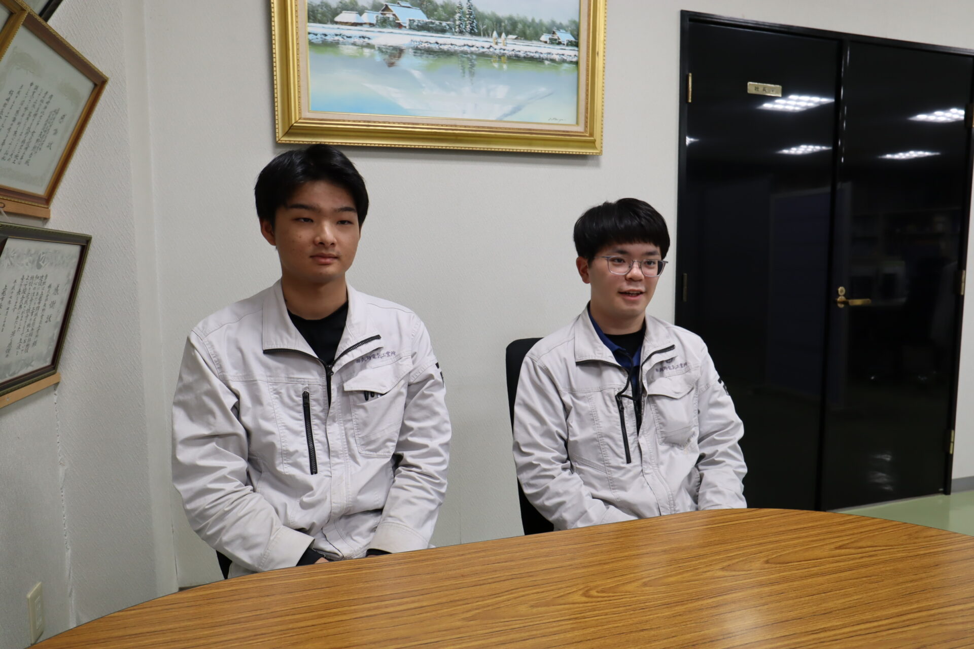 段階的な教育や研修、資格取得サポートで若手社員の育成に取り組む同社。実際に働く入社2年目の五十嵐哲哉(19歳)さん、今年入社したばかりの下間涼久さん(19歳)の二人に、仕事の魅力や職場環境について聞いた。