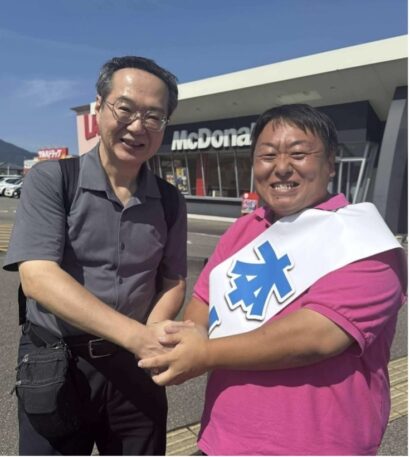 上記のとおり、今回、燕市吉田を訪問したのですが、ちょうど燕市長選の直前でした。森山君は候補者のひとり佐野大輔氏を熱心に推しており、私は、寡聞にして、ご本人との面識は無かったのですが、森山君がここまで応援するなら、と、街頭演説中のご本人にご挨拶に伺いました。かなり逆風が吹いていると聞いていましたが、大きな身体を汗だくにしながら、辻立ちしている姿には好感が持てました。10月19日の投票では、わずか144票差の大接戦を制して、見事、市長に当選となりました。これから佐野新市長のもとで、新しい燕市の発展を大いに期待しています。
