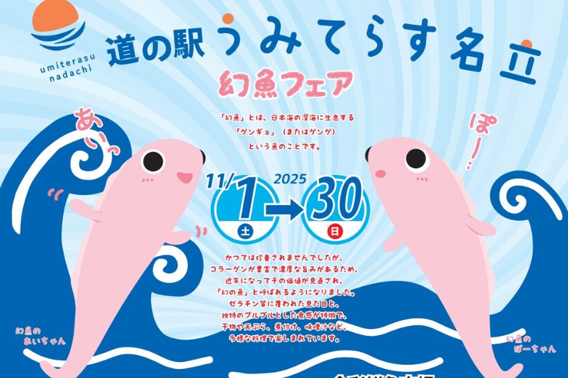株式会社ゆめ企画名立(新潟県上越市)が運営する「道の駅うみてらす名立」(新潟県上越市)は11月1日から30日まで、名立漁港で水揚げされた幻魚(げんぎょ)をテーマにした「幻魚フェア」を開催する。幻魚の魅力を広く発信し、地域に根ざした食文化を次世代へ伝えることを目的としている。