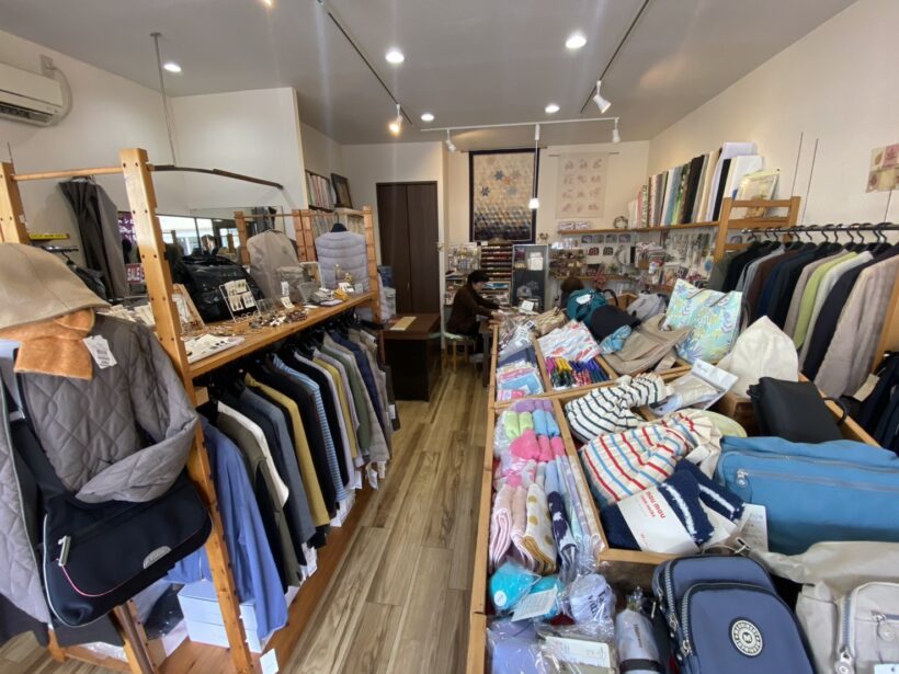 「バンビ」は長年の固定客が中心だ。社長の母が運営する体制で、母は中学校の家庭科教員免許を持つ。パッチワーク教室を開き、裁縫やお直しにも対応するなど、地域の「暮らしに寄り添う店」としても親しまれている。