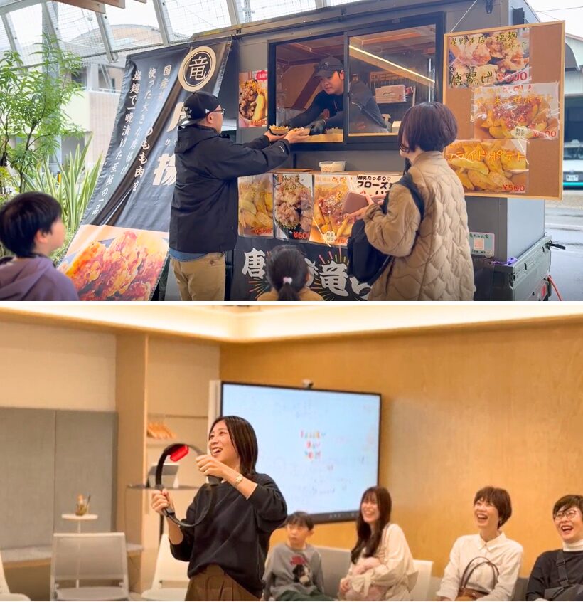 キッチンカーコーナーには、「bistro de cote」「フードラン」「竜ちゃん家」の3店舗が出店。飲めるオムライスやからあげ、ロングポテト、焼きそば、たこ焼きなど、子どもに人気のメニューが並んだ。参加者からは「子供が大好きなものばかりで嬉しい」「話題のキッチンカーを一度に楽しめて最高」などの声が寄せられた。