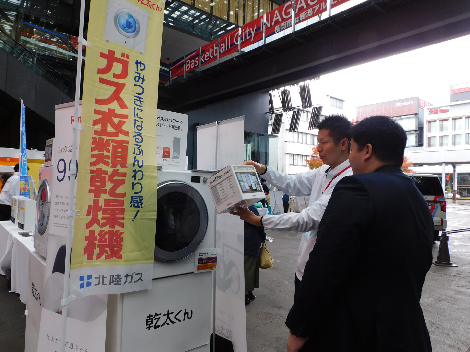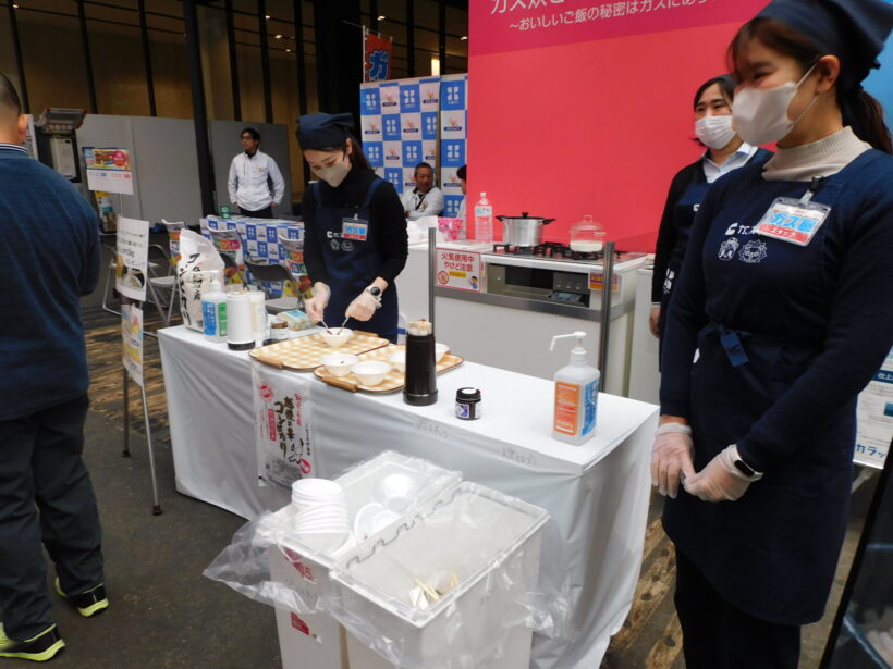 会場では、エネファーム(家庭用燃料電池)やガス温水暖房システム、衣類乾燥機、最新型ビルトインコンロなどの実演展示を実施。スタッフが機能や省エネ効果を説明し、来場者が実際に操作を体験する姿も見られた。また、ガス火で炊いた新米の試食コーナーでは「おいしい」「ガス火の強さが分かる」といった声が上がった。