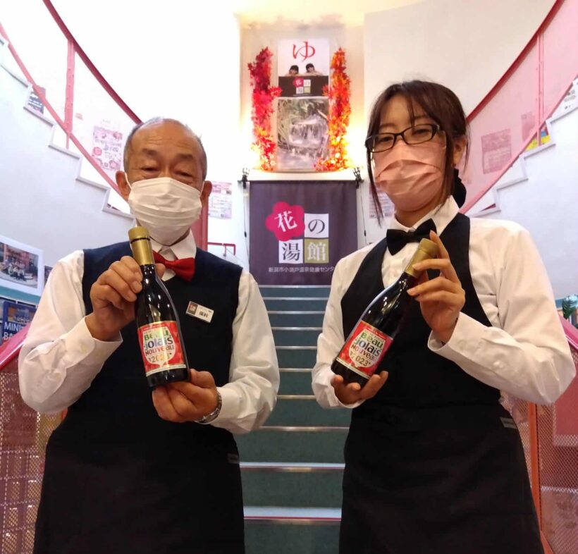 株式会社関越サービス(新潟市西蒲区)は、同社が運営する日帰り温泉施設「新潟市小須戸温泉健康センター花の湯館」(新潟市秋葉区)でボージョレ・ヌーヴォー解禁日にあわせて「ワイン風呂」を期間限定で開催する。