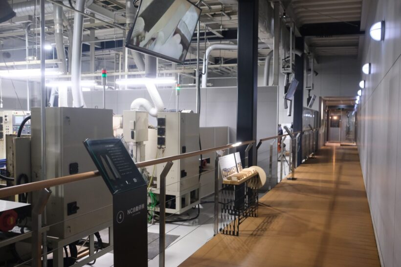 工場内にしっかりとした見学用の通路が通っている形だが、それでも機械の音や振動が伝わり、職人の表情が判るほどにまで接近できる。まるで、本当に自分が働く立場になったかのような距離感だ。