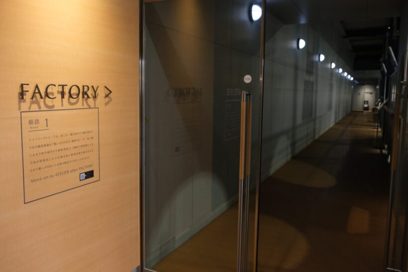 エントランスを抜けるといよいよ工場へ。扉を開けると工場の音がひときわ増し、期待が高まる。