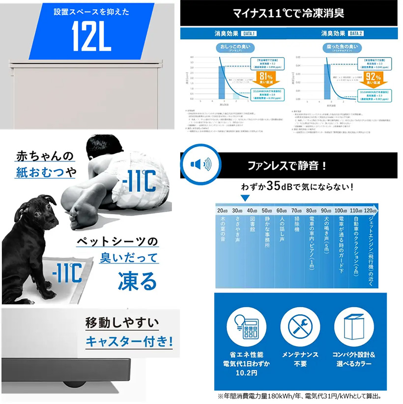 この製品は、生ごみだけでなく、乳幼児のおむつやペットの排泄物など、常温で腐敗が進むことで発生するにおいの問題に対応するために開発、2022年に発売された。同社が産業機器製造で培った技術を活かし、家庭用電力においても強力な冷凍システムを実現している。