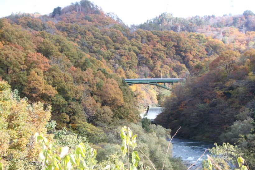 外に出ると、胎内の山々は赤や黄色に彩られている。最盛期はほんの少し過ぎているが、これくらいが程よく美しい。平日の稼働中とはいえ、心潤すことはできる。