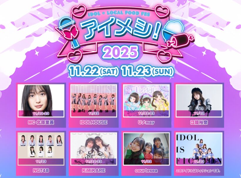 アイドルのステージと新潟グルメのコラボイベント「アイメシ2025」が11月22、23日の2DAYSで新潟LOTS(新潟市中央区)にて開催される。