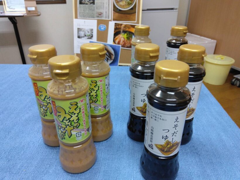 両社では本業のほか、これまで未利用魚(エソ)の『焼き干しづくり』にも取り組んで来ており、これまでもラーメン店や料理店などにも提供して来た。そこで障がい者就労支援施設が携わる“エソカラエシカルプロジェクト”(水産・福祉連携)に賛同した山崎醸造株式会社(新潟県小千谷市)がこのエソのだしを使った『えそだしつゆ』と『えそのみそ汁の素』を販売開始し、このほどエソの焼き干しづくりを行う新潟アパタイトの小林かなえ取締役と、山崎酒造の広井伸行常務取締役がエソ製造所(上越市)にて、ともに会見を行った。