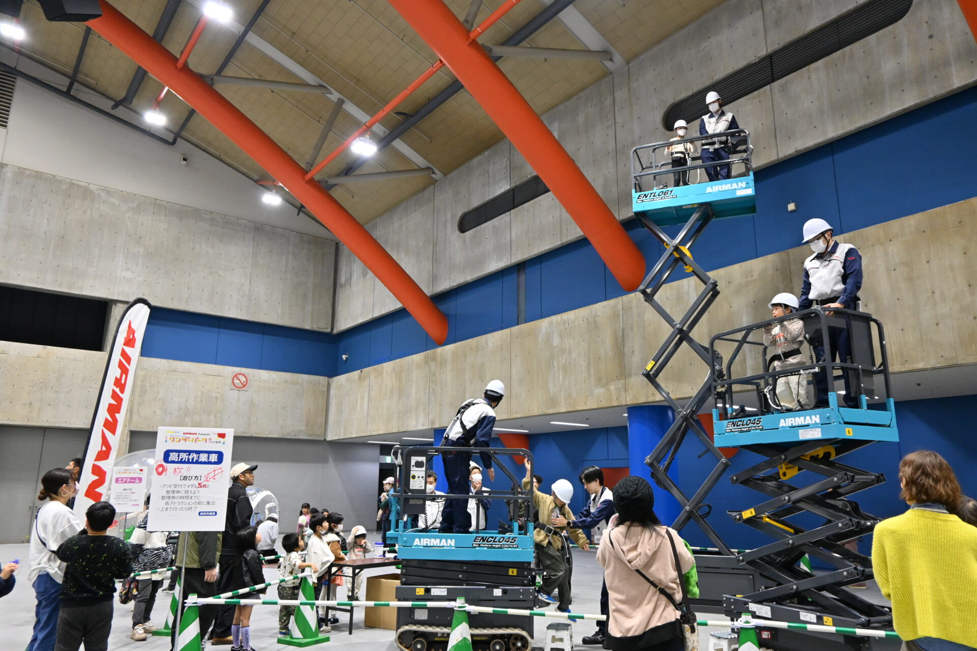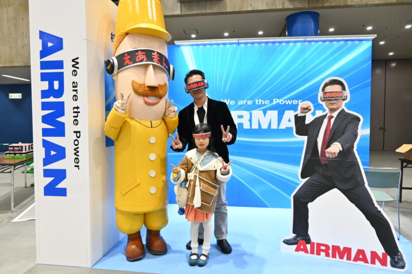 協賛企業として参加した株式会社AIRMAN(新潟県燕市)のブースでは、同社の製品である高所作業車体験や、わたあめコーナーが人気を集めた。佐藤豪一代表取締役社長は「AIRMANゴーグル」を着用し、来場者と次々に記念撮影に応じていた。