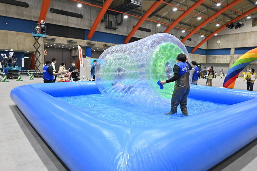 一方の「アトラクションゾーン」には、エアチューブや、エアドーム、レルヒさんのふわふわなど、10種の遊びがそろった。今回の協賛企業である「AIRMAN」にちなんで、空気の力を活用した遊具が多くならんだ。
