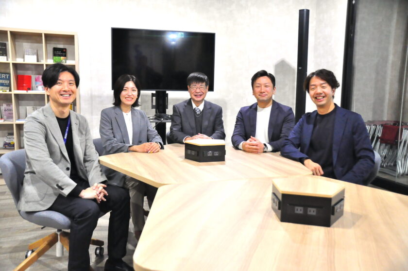 (左から)株式会社BSNアイネット・中村高明副部長、INSIGHT LAB株式会社・黒岩淑香部長、新潟医療福祉大学・大河正志教授、株式会社アイセック・木村大地代表取締役CEO、株式会社コルシー・堀口航平代表取締役