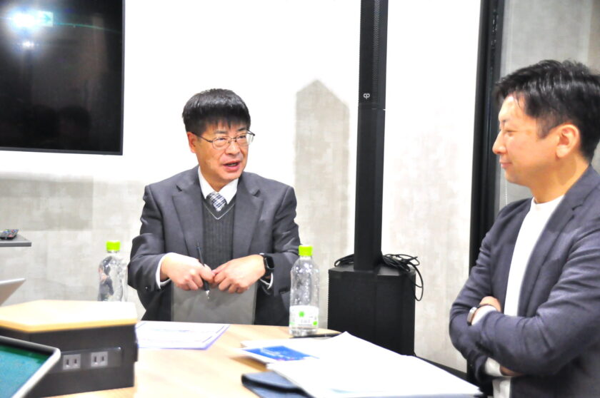 新潟医療福祉大学健康データサイエンス学科の学科長を務める大河正志教授(写真左)と、健康診断データなどを活用し、県内外の企業への健康経営を推進する株式会社アイセックの木村大地CEO(写真右)