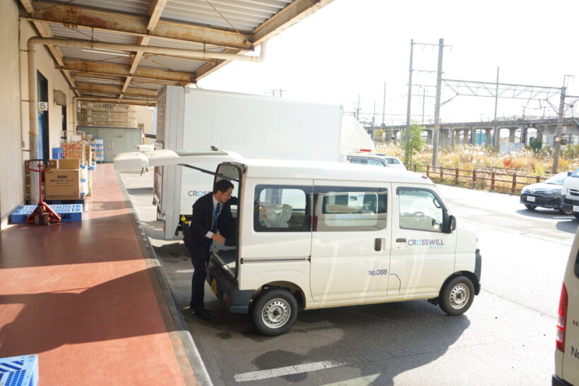 病院への備品を用意し社用車に積み込む瀧澤さん