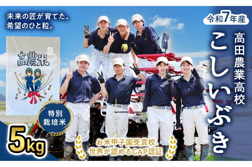 今回ふるさと納税返礼品として初登録されたのが、新潟県立高田農業高校の生徒が育てた米「高農米(こうのうまい)」。同校の生徒たちは田植えから稲刈り、その後の管理まで全ての工程に関わり、世界基準の農業認証「GLOBALG.A.P.」を取得し、大阪・関西万博の飲食店でも提供された。