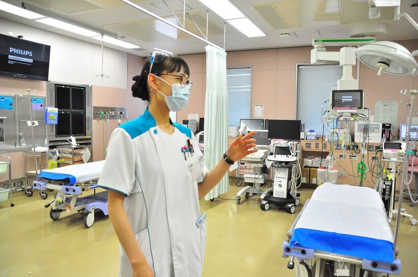 同院には病気・怪我による重症患者や、県内でも対応施設が限られる小児の重症例、希少疾患、ECMO(体外式膜型人工肺)を必要とする重症患者など、他の医療機関では対応困難な症例が集約される。倉又さんが普段勤務する救急外来は、まさに医療の最前線。一刻を争う現場で、看護師たちは医師と連携しながら迅速な処置を行う。