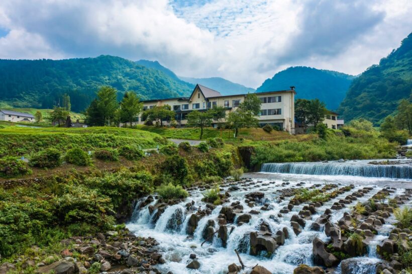 静かな里山に佇む一軒宿「笹倉温泉 龍雲荘」では、眼前に広がる棚田や山川の風景など、雄大な自然を体感できる。