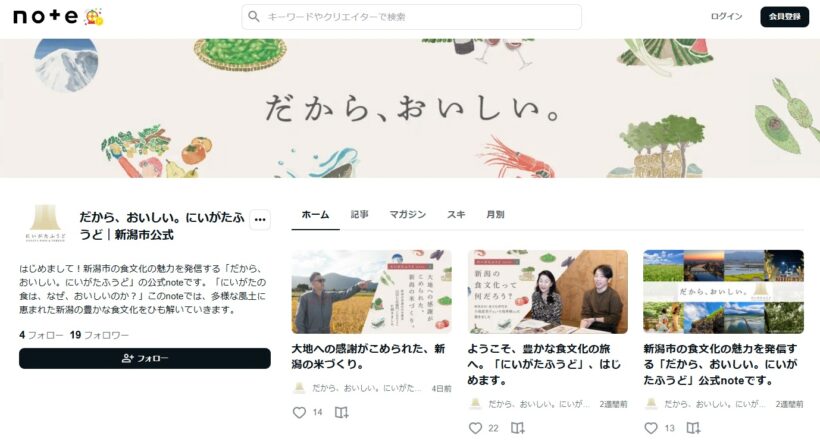 公式noteで新潟市の食の魅力を発信している様子(プレスリリースより)