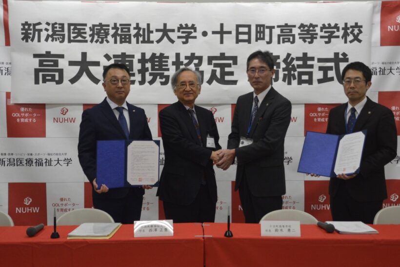 新潟医療福祉大学(新潟市北区)は12月11日に県立五泉高等学校(新潟県五泉市)と、15日に県立十日町高等学校(新潟県十日町市)と高大連携協定をそれぞれ締結した。同大学が高校と高大連携協定を締結するのは、十日町高校で21校目となる。