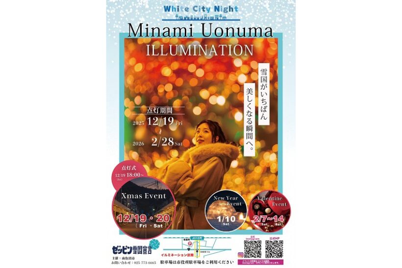 新潟県南魚沼市の六日町駅前通商店街で12月19日、イルミネーションイベント「Minamiuonuma White City Night」が始まる。期間は2026年2月28日まで。