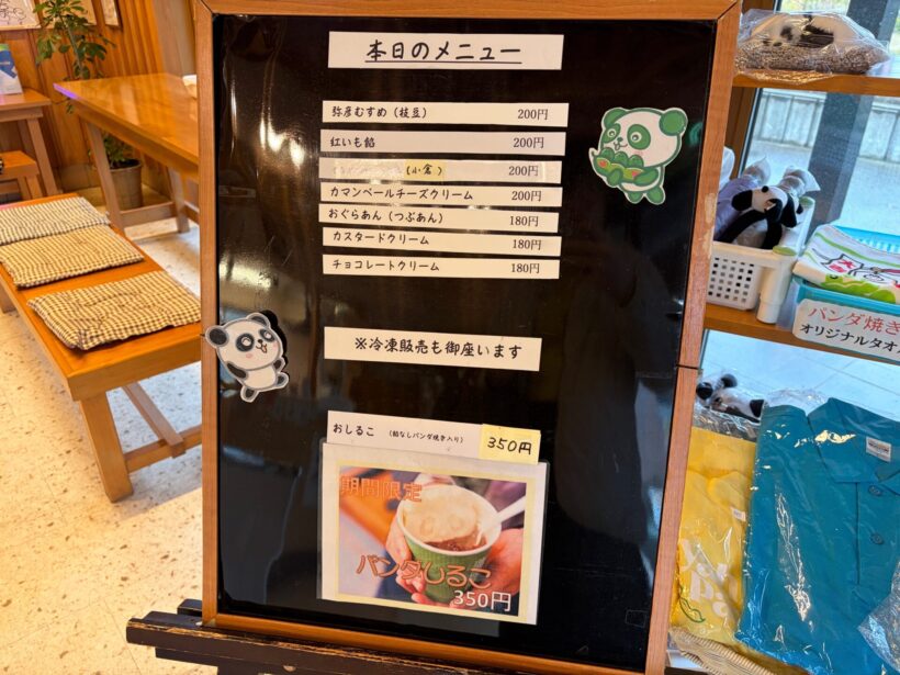 おしるこのほかにも、名物パンダ焼きがズラリ
