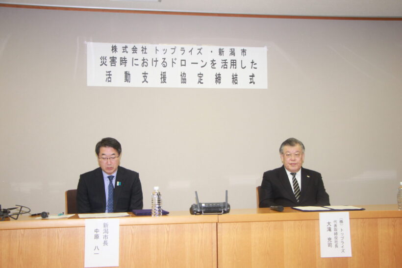 総合建設コンサルタントの株式会社トップライズは、新潟市と「災害時におけるドローンを活用した活動支援協定」を締結、12月25日に新潟市役所で締結式が催行された。