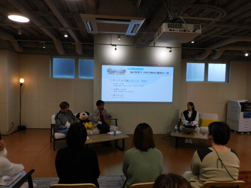 先輩起業家のトークセッションでは、在宅ワークならではの悩みややりがいなどが語られた