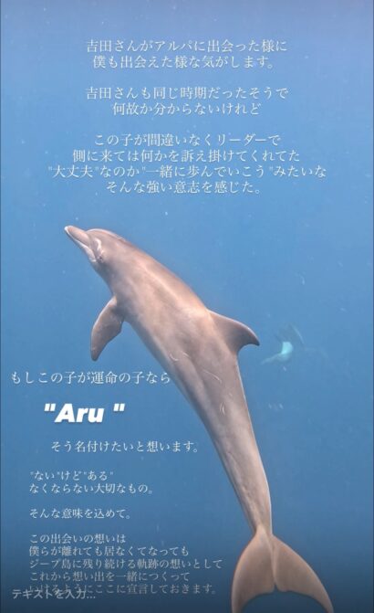 日本のTVでジープ島の全国放送があった。皆さまのお陰でとても大きな反響があった。そして、吉田さんと同じように大切な1匹のイルカに出会えたのである。