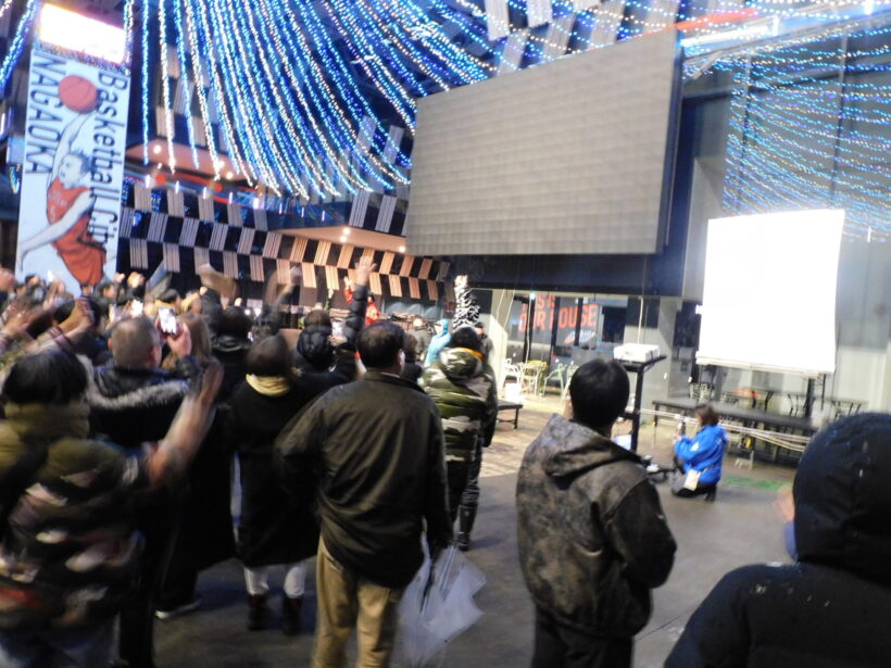 アオーレ長岡ナカドマに設置されたビジョンには30秒前から数字が表示され、会場の雰囲気は次第に高まっていった。20秒前、10秒前と刻まれる時間に合わせ、人々の視線は画面に集中する。「3、2、1、0…」。日付が変わった瞬間、会場内のあちこちから歓声が沸き起こり、2026年の到来を祝った。