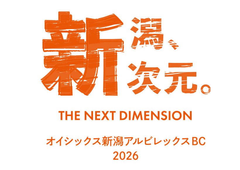 オイシックス新潟アルビレックスBC 2026年シーズンのスローガンは「新潟、新次元。ーTHE NEXT DIMENSIONー」(プレスリリースより)