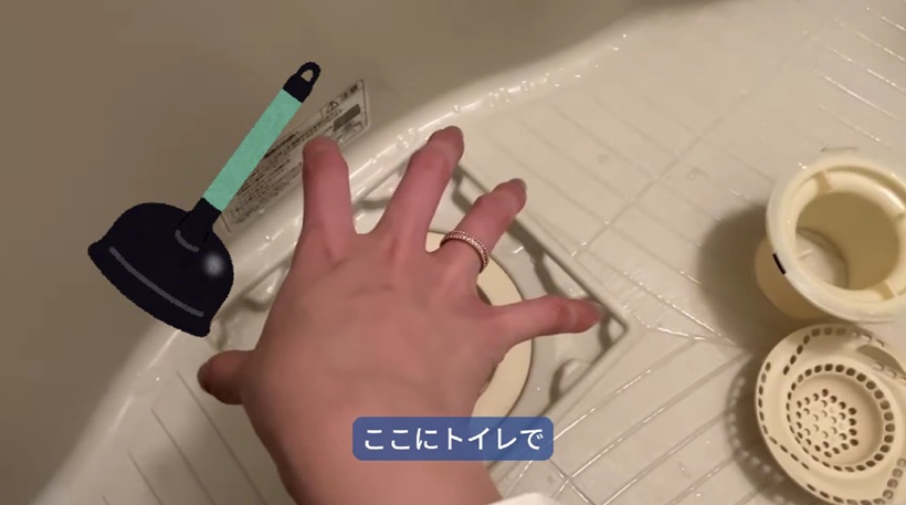 排水溝にトイレでよく使うようなラバーカップを置いて、押したり引いたりします。押す時よりも引く時を意識して使ってください。