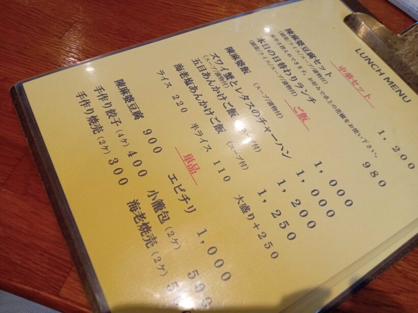 日替わりランチは2品目、「油淋鶏」と「チャーハン・ラーメンセット」各10食限定。ただ記者をとらえて離さない「陳麻婆豆腐セット」(税込1,200円)。日本に麻婆豆腐を広めた、あの陳健民のDNAが、この亀田商店街に息づくのだ。無類の麻婆好きである記者にとっては、是非に及ばず。