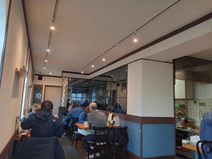 亀田商店街の一角につのだはある。寒空のせいか外に行列はなかったが、店内の席はいっぱいで、少しの順番待ちだった。外観・内観ともにいかにも中華屋の「赤っぽい感じ」ではない。町中華というより町で長く愛される喫茶店のような雰囲気。シックな中に暖かみがある。